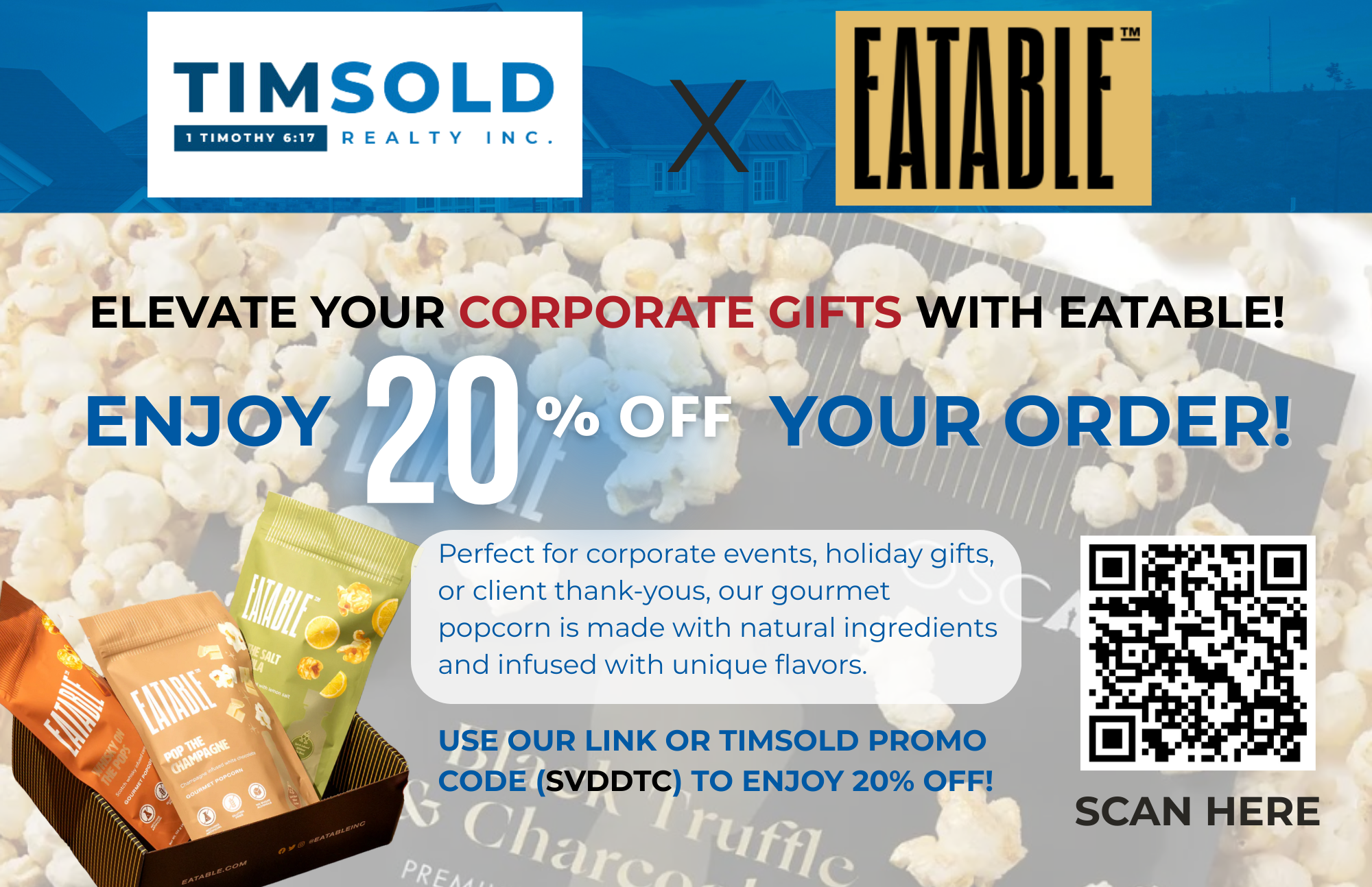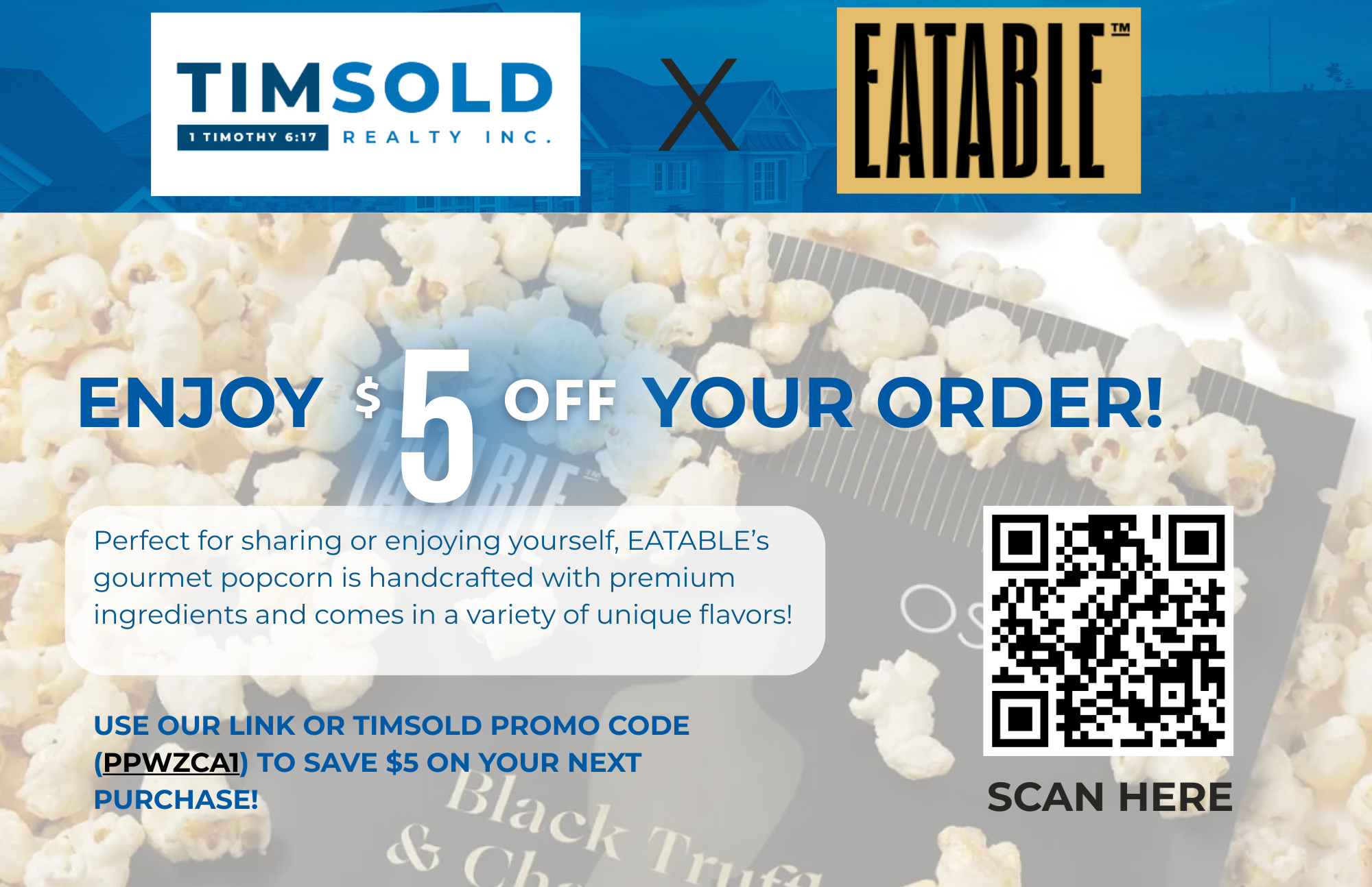 Welcome to our special collaboration between TimSold and Eatable! We’re thrilled to bring you an exclusive offer that lets you indulge in luxurious, handcrafted gourmet popcorn.